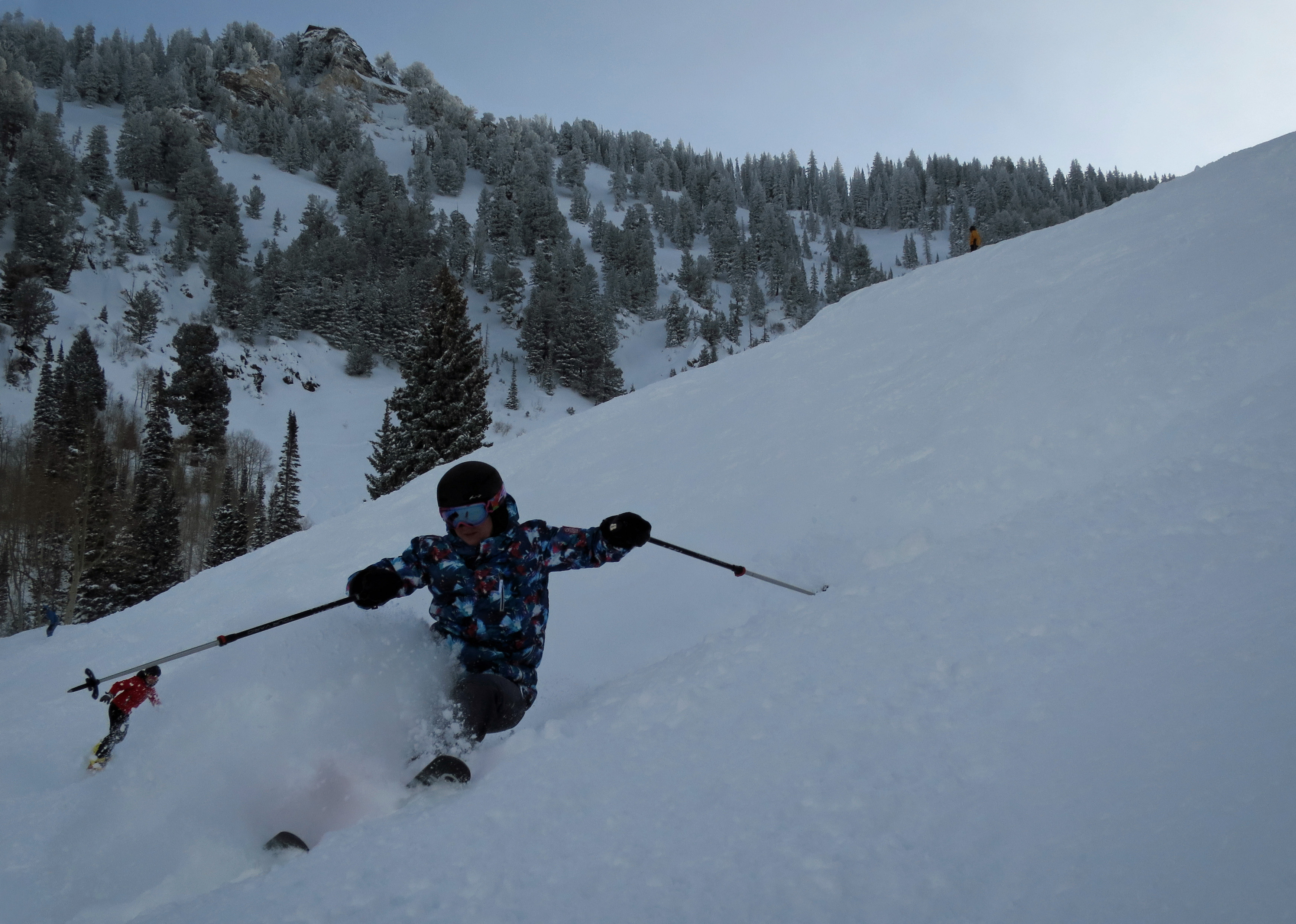 Last March during our record breaking warm and sunny winter, several Colgate friends visited and experienced “spring conditions” long before normal at Snowbird. Teddy booked a trip to visit here this January for MLK weekend to get a shot at what Little Cottonwood is known for, ze powz.