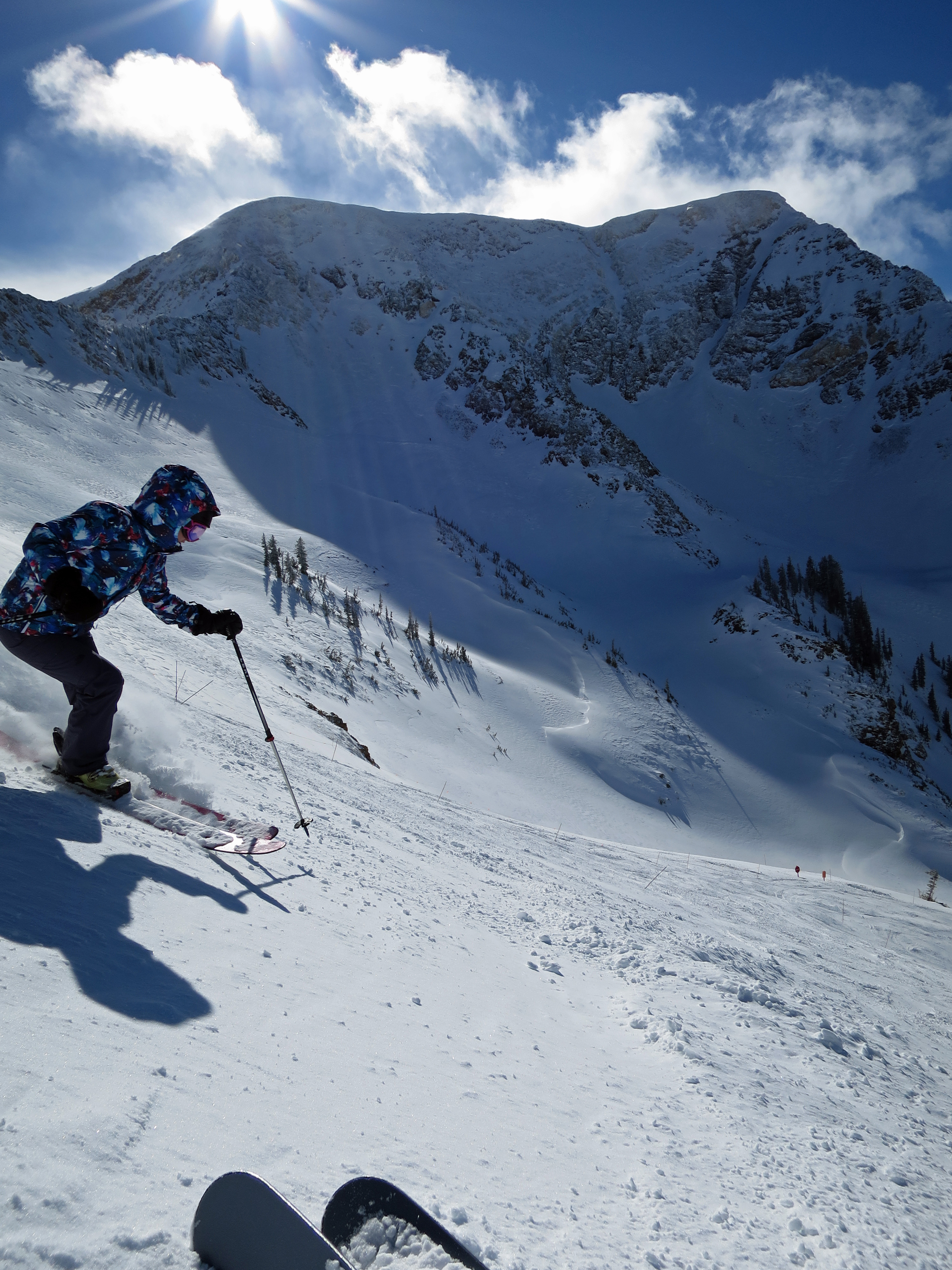 On our next trip up the tram, they announced they’d be dropping the rope on Mineral Basin. Teddy made the most of an all-time untracked run down the gut of Mineral. Nicole will likely forgive him for leaving her stuck in a snow-hole above at some point in the next decade. Teddy will remember the run for far longer than that.